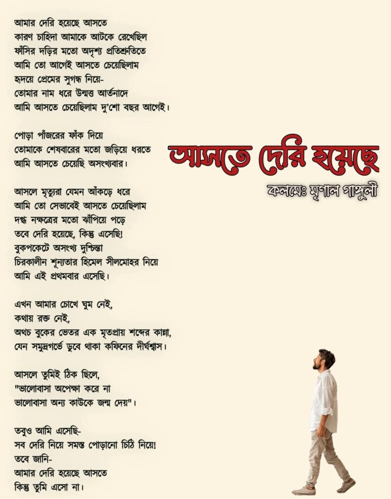 যাঁরা খোঁজেন Bengali poems on loneliness, love and loss, pain and separation, কিংবা inner conflict, identity crisis, exile and isolation—এই ব্লগ তাঁদের জন্য এক গভীর সাহিত্যিক অভিজ্ঞতা। মৃণাল গাঙ্গুলির কবিতা শুধুই পড়ার জন্য নয়, অনুভব করার জন্য; যেখানে জীবন ও যন্ত্রণার কবিতা এক হয়ে ওঠে।